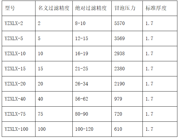 過(guò)濾精度為2-100um